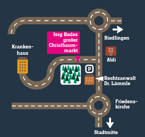Christbaummarkt Ziegelhausstraße 68 beim Krankenhaus Biberach So finden Sie uns/Anfahrtsplan Kontakt T 0174 1931443 bestellung@jb-biberach.de Abokarte | Impressum |Datenschutz